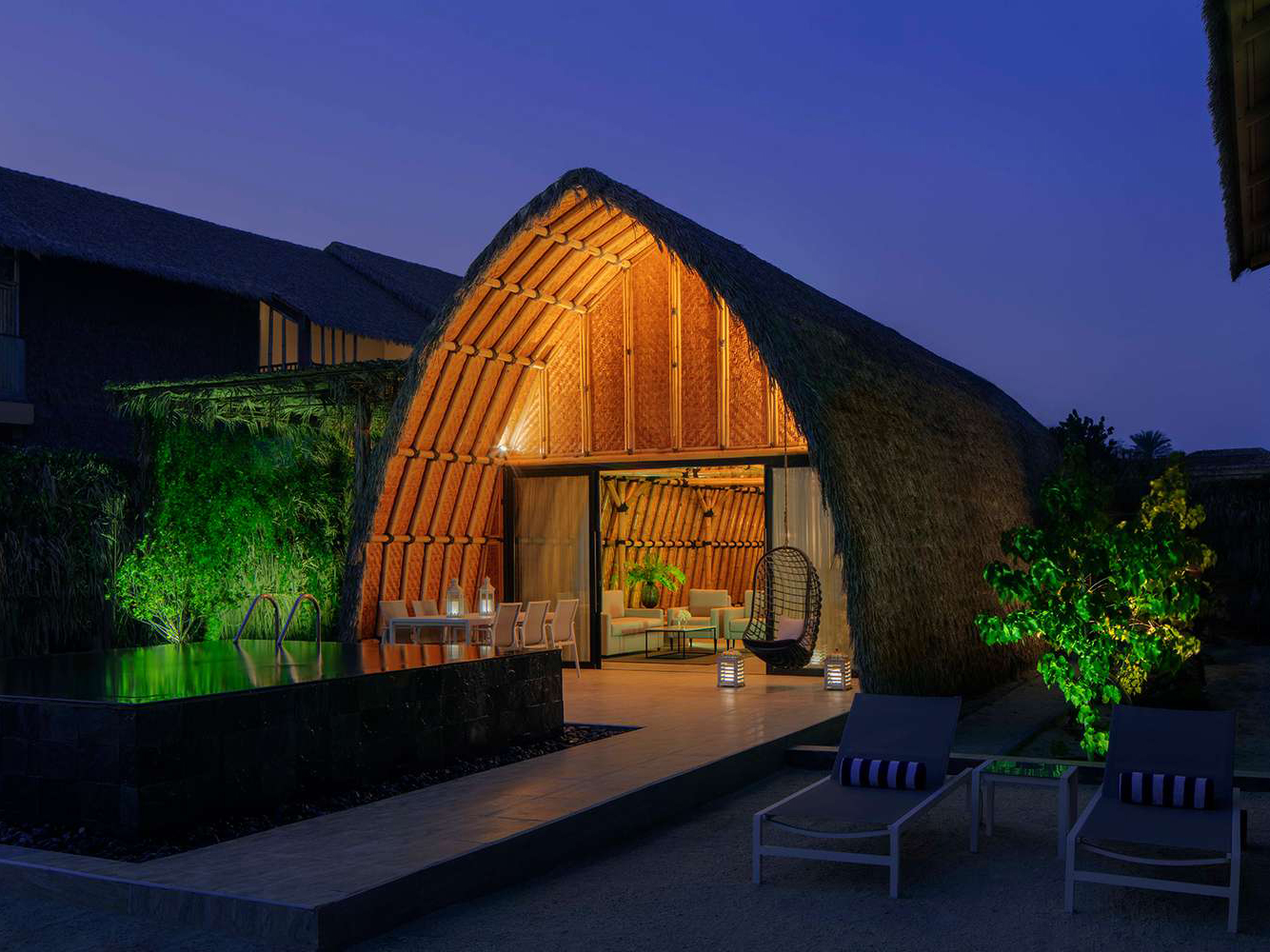 As you approach the resort, you're greeted by an architectural masterpiece seamlessly blending with the natural beauty of its surroundings. Elegantly designed villas and suites rise from the sands, each offering breathtaking views of the Arabian Gulf and the distant skyline of Dubai.